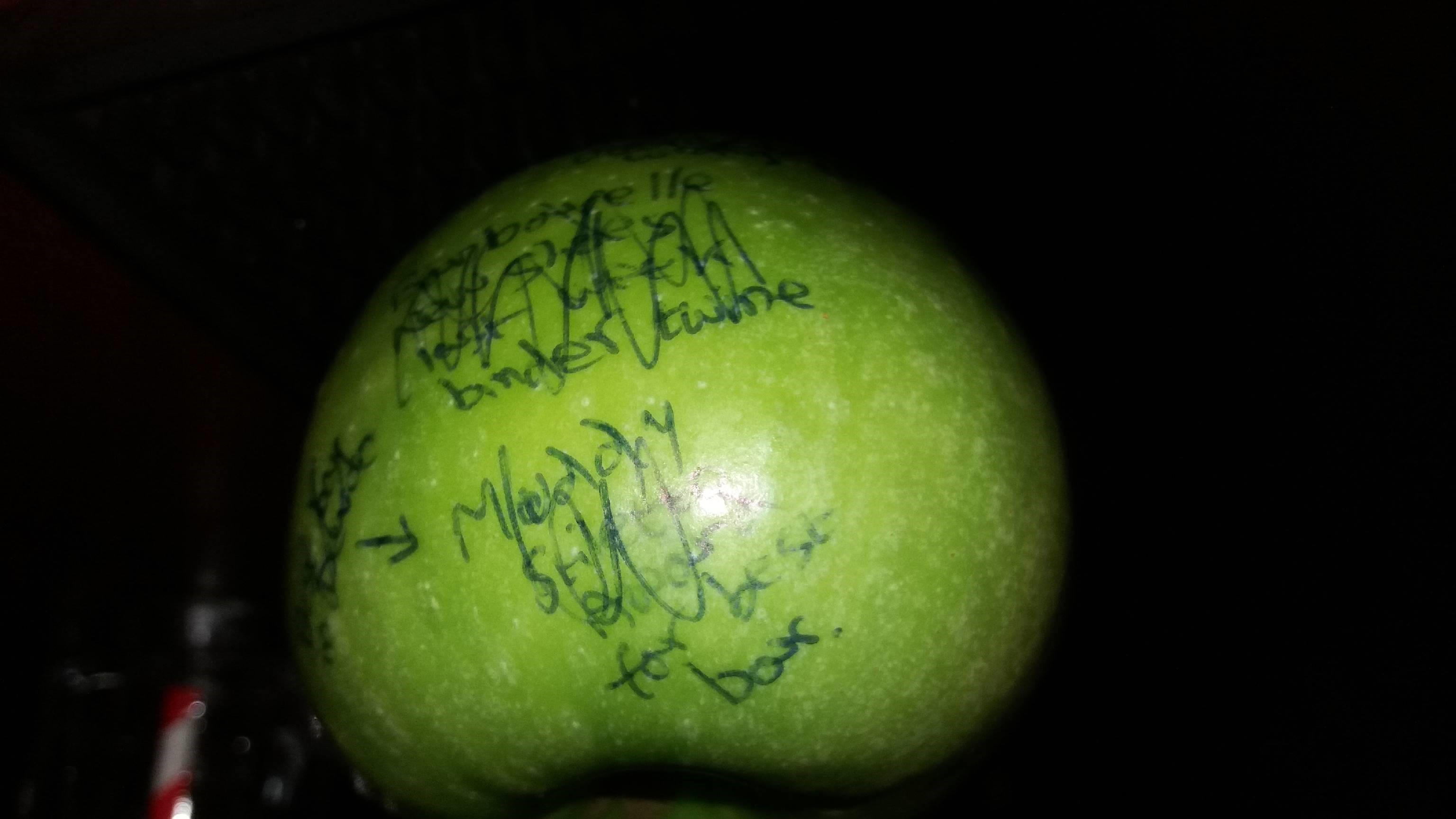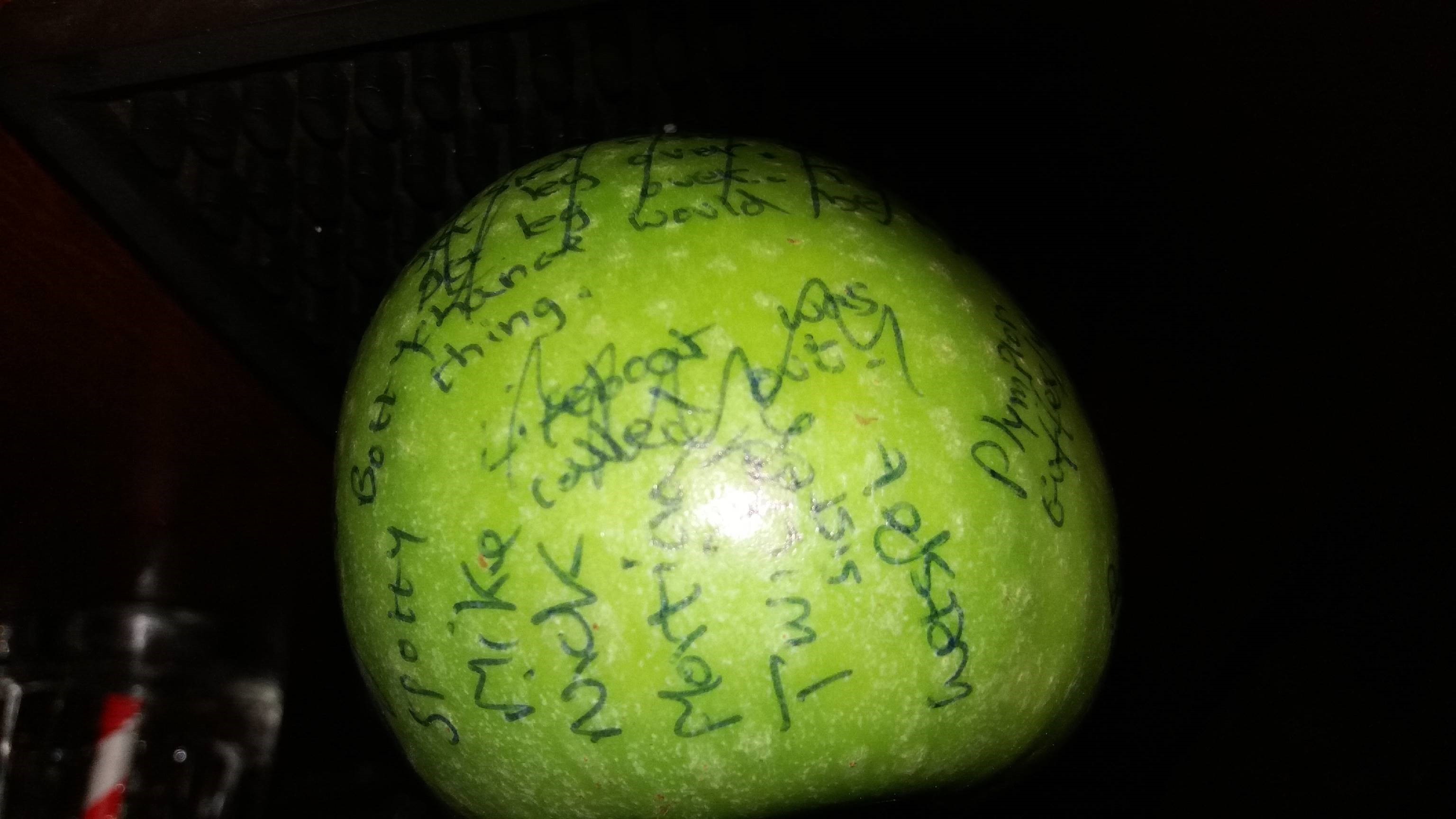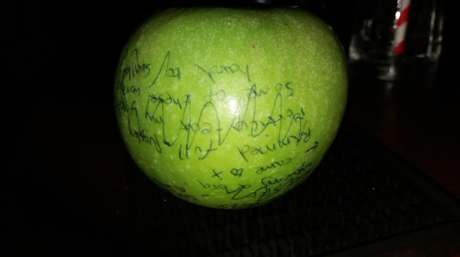 Later still, in the pub, we were called to order by esteemed RA Scholarly Squashed balls who proceeded to imbue us with his insights into the evening’s activities – written on an apple! This took me back, slightly, as I was hoping to purloin his notes to make my scribing easier…
