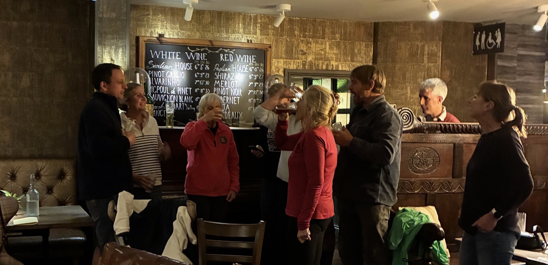 It was a slow news day. Apparently, there were lovely views; the promised Beaver Moon stayed hidden behind the clouds, and even Shaggy disappointed by not falling over! [Ed. It’s OK – I’m sure I’m due some sort of spectacular injury quite soon (and remember, folks: I fall over, so you don’t have to!)]. However, unbeknown to all those who had dashed on ahead, there was news! Lowt’arse sustained an injury so serious she had to skip the pub and go home for tlc [Ed. Blimey – must’ve been near-fatal!]  and was still complaining about it the following morning! Ahh. [Ed. Hope you’re fully recovered by now, Lowt’arse 🤕]