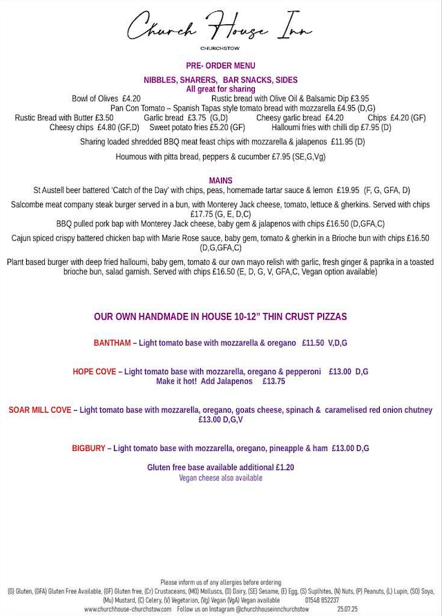 Pre orders by Tuesday (12 August) please. Pay on arrival at the pub. Thanks!